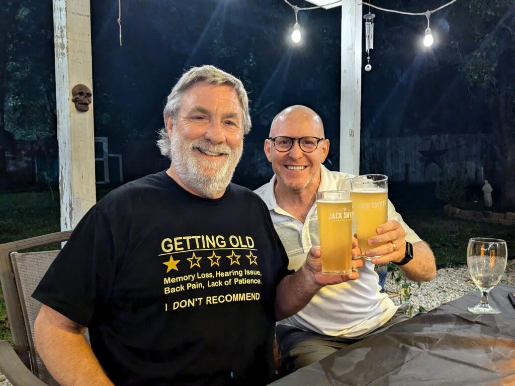 Birthday toast honoring Dad, featuring “Jack Smyth” ale glasses that I found in Ireland. Kim surprised us by contacting them and convincing them to sell and ship them to us! 🙂
